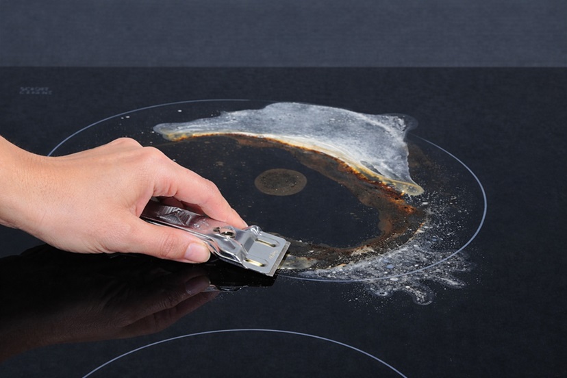 Fรผr hartnรคckige Verschmutzungen eignet sich ein Glaskeramik-Schaber: