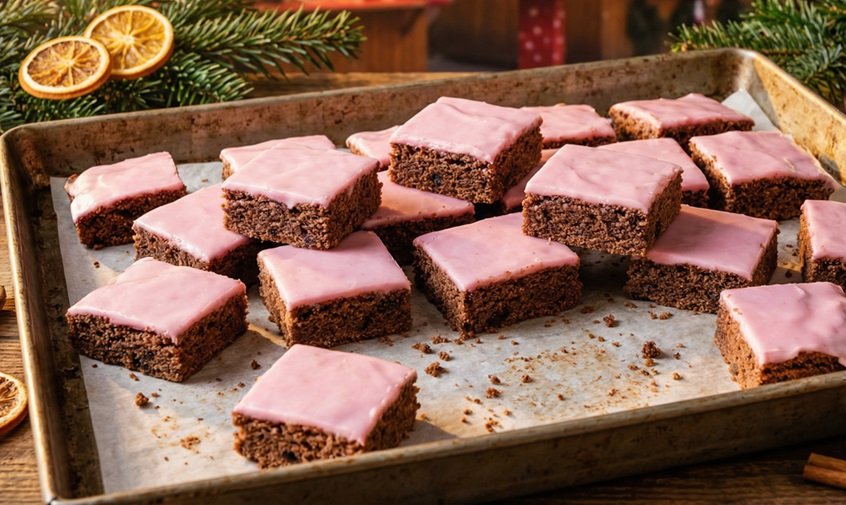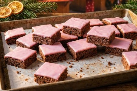 - Für den Guss Staubzucker mit so viel Glühwein verrühren, bis ein dickflüssiger Zuckerguss entsteht. Den Guss gleichmäßig auf den kalten Kuchen streichen und fest werden lassen. Die Glühweinschnitten anschließend nach Wunsch in Rauten, Quadrate oder Dreiecke schneiden und servieren.
