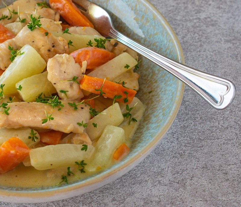 Braten Rezepte / Rezepte zum Dünsten / Eintopf Rezepte / Geflügel Rezepte / Gemüse Rezepte / Hauptspeisen Rezepte / Huhn Rezepte / Kohlrabi Rezepte / Oliven Rezepte / Pfannengerichte Rezepte / Zitronen Rezepte / Zwiebel Rezepte / Knoblauch Rezepte / Karotten Rezepte / Schlagobers Rezepte / Sauerrahm Rezepte Ähnliche Rezepte