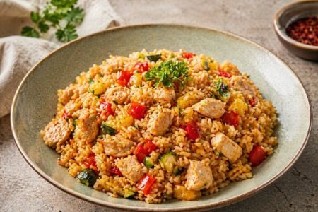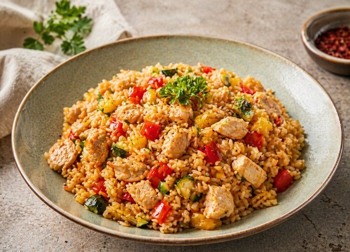 Braten Rezepte / Rezepte zum Dünsten / Einfache Rezepte / Fleisch Rezepte / Geflügel Rezepte / Gemüse Rezepte / Hauptspeisen Rezepte / Paprika Rezepte / Pfannengerichte Rezepte / Puten Rezepte / Reis Rezepte / Schnelle Rezepte - Schnelle Gerichte / Zucchini Rezepte / Zwiebel Rezepte / Butter Rezepte Ähnliche Rezepte