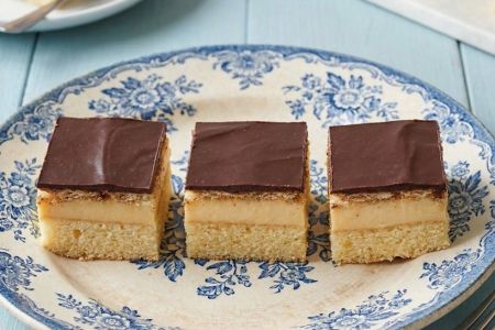 - Die Pudding-Schnitten mit Schokolade mindestens 1 Stunde kühl stellen, damit die Glasur fest wird und der Kuchen gut durchziehen kann. Zum Schneiden ein Messer in heißes Wasser tauchen und nach jedem Schnitt reinigen – so entstehen saubere Stücke.
