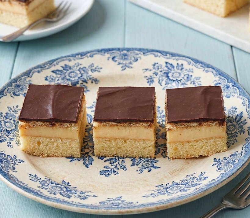 Die Pudding-Schnitten kann man auch ohne Butterkekse zubereiten. Die Schokoglasur kann hier direkt auf die ausgekühlte Puddingschicht verstrichen werden.