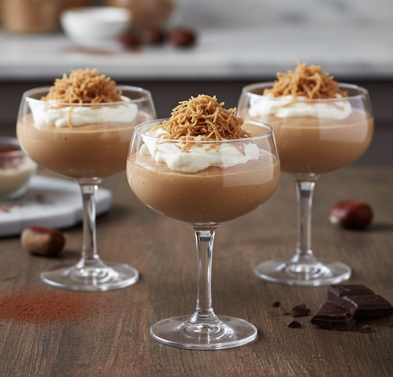 Anstelle von Baileys für die Schokoladen-Maroni Mousse Amaretto verwenden!