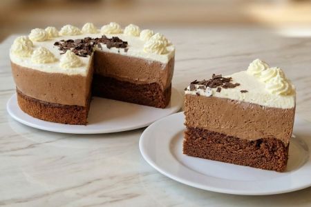 - Den ausgekühlten Tortenboden dünn mit Ribiselmarmelade bestreichen. Die Schokoladen-Schaumcreme darauf verteilen und glatt streichen. Die Torte für mindestens 4 Stunden im Kühlschrank fest werden lassen. Vor dem Servieren frisches Schlagobers steif schlagen, die Oberfläche der Torte damit einstreichen und nach Belieben mit Obersrosetten und Schokoladenspänen dekorieren.