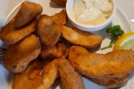 Passend einen grünen Salat und Kräuter- oder Knoblauchsauce zu den gebackenen Steinpilzen servieren.